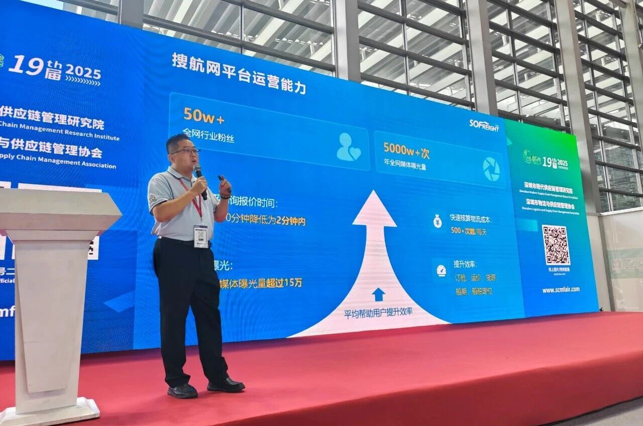 在现场,第19届物博会“跨境物流与供应链创新发展论坛”召开,搜航网研发总监柴伟带来了“搜航网数字化国际物流服务平台——构建国际物流数字新生态,引领行业智慧变革”的精彩分享,获得现场的一致认可和好评。
