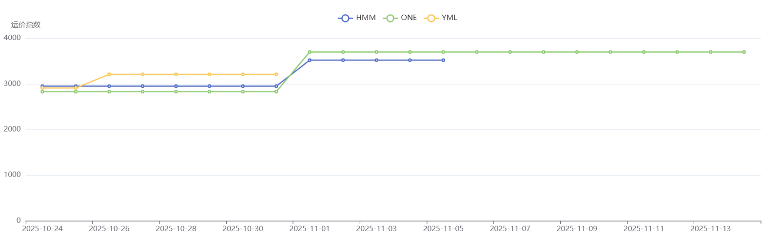 预计,11月各船东将拉高运价,11月下旬停航较多,运价短期内维稳高位。