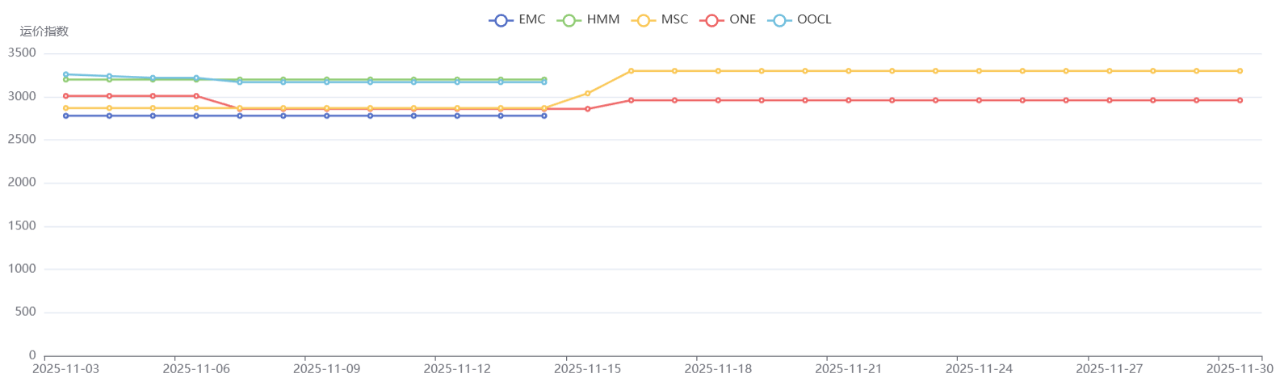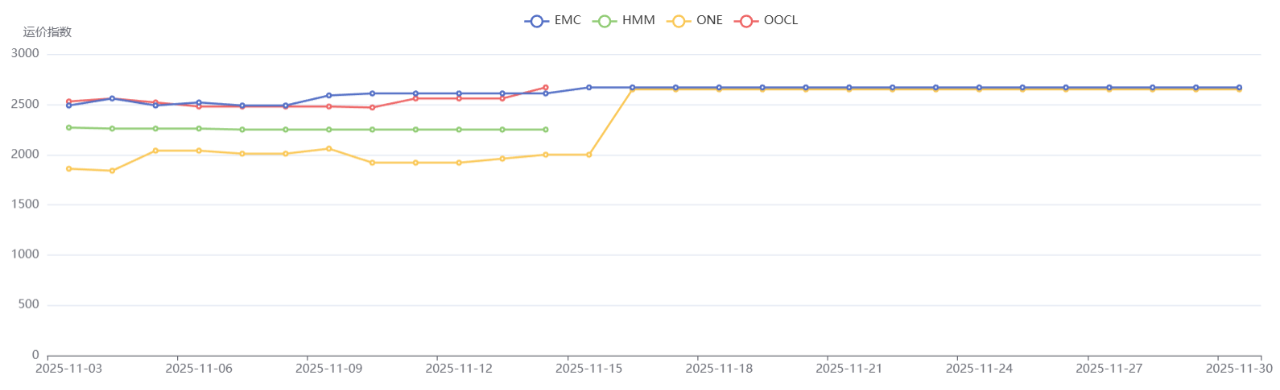 11月船期停航较多,预计下旬船司又将推涨运价,市场运价可能继续小幅上涨。